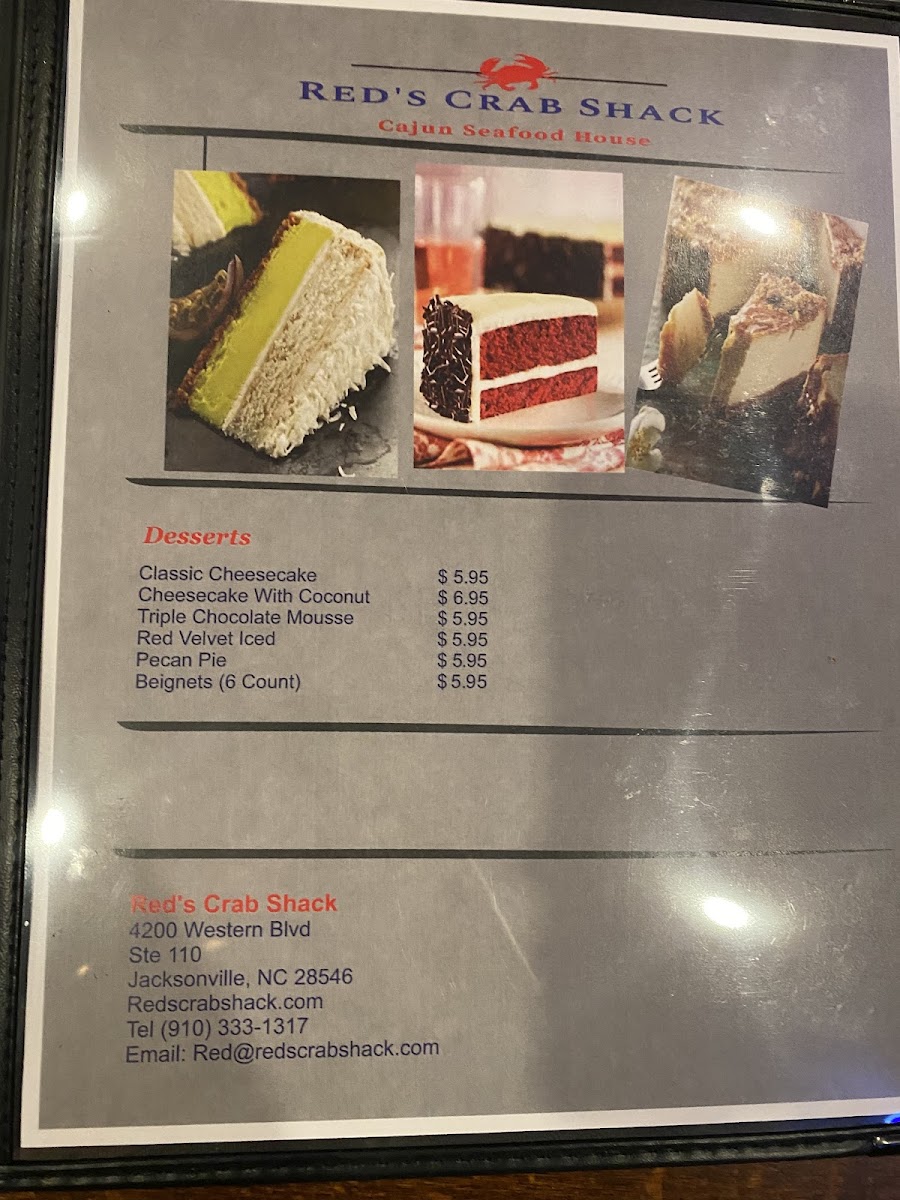 Welcome to Red's Crab Shack, a seafood haven nestled at 4200 Western Blvd, Jacksonville, NC. This charming eatery boasts an extensive menu designed to please every seafood lover. Here, freshness reigns supreme with a selection of grilled delights, including Grilled Scallops priced at $29.95, and tantalizing fried options like the Shrimp Basket at $16.95.
